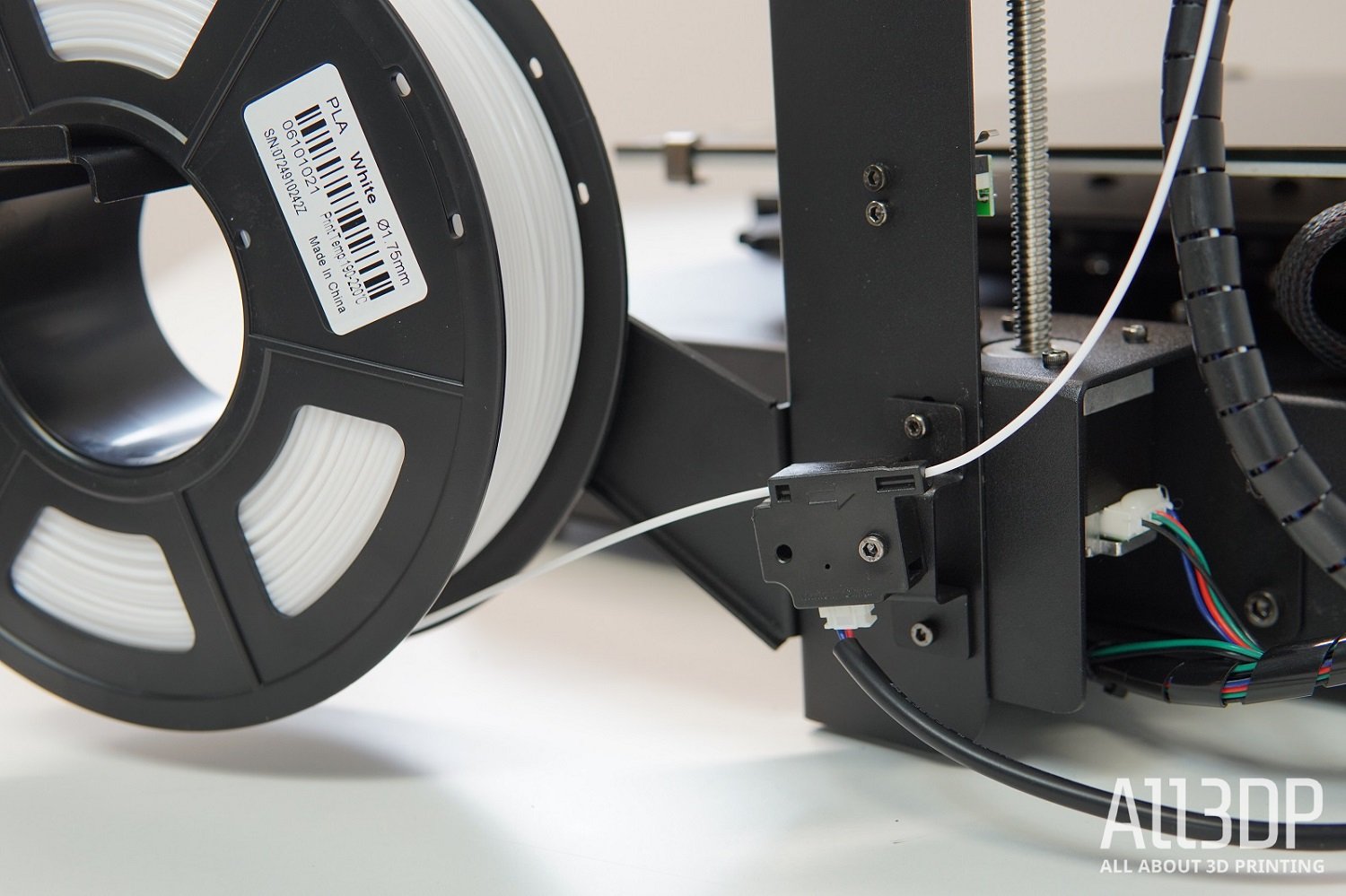 We deliberately let the filament run out on one of our prints and prompted the runout sensor into action. A swift filament change later, it picked up the job without problems. Keep in mind this is a mechanical sensor. Compared to the costly alternative of an optical sensor, which could also detect filament blockages, the mechanical sensor only trips when there is a lack of filament. It is a budget solution, but a welcome and necessary one nevertheless.