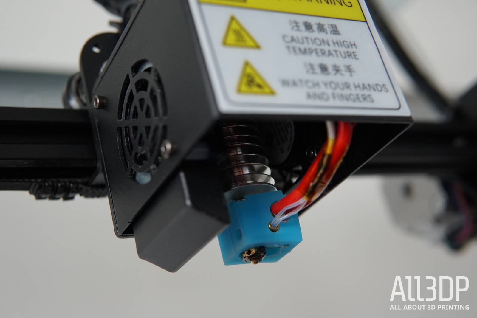 While it isn’t dual geared like a Bondtech extruder, the feeding mechanism does work surprisingly well and ensures continuous feeding. It just takes a bit of fiddling when changing filament, inserting it upside down. Handily, Anycubic has a little plastic funnel mounted to the extruder feeding hole. This helps you to guide filaments into the gear mechanism more easily. Unfortunately, Anycubic does not ship a spare one with the included extras.