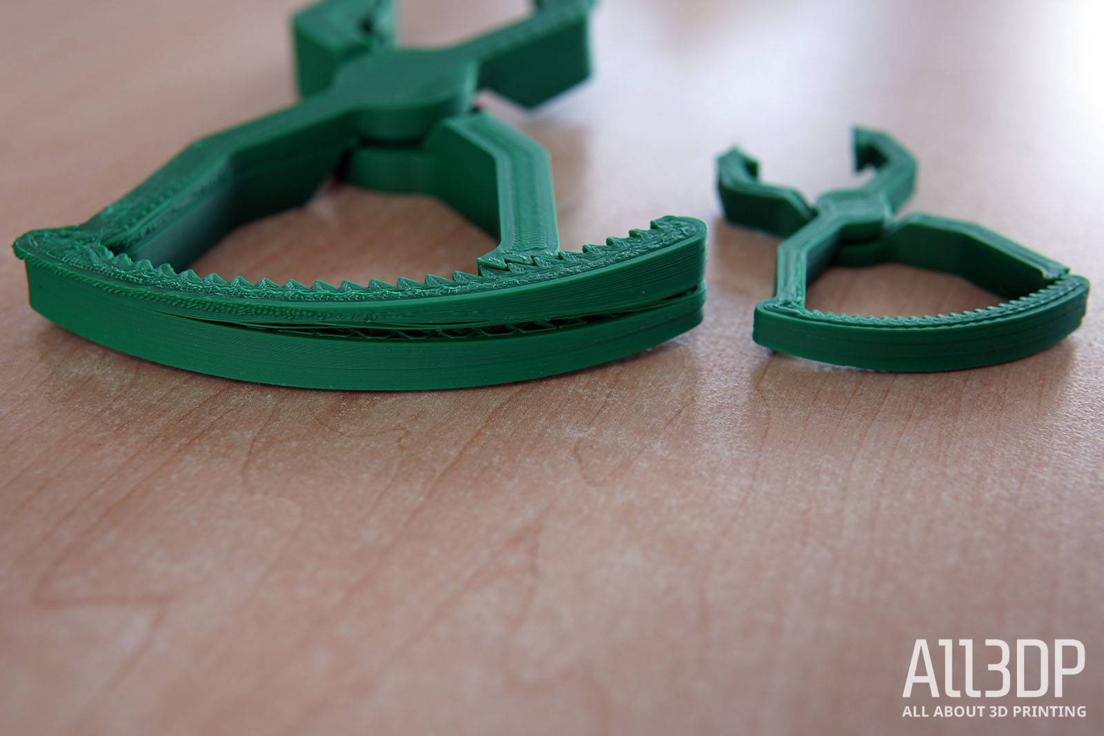We did already touch on the Mega X’s capabilities of handling different materials based on the printer’s technical prerequisites. Not to go over it all again, but as always, the proof of the pudding is the eating. We experimented with a couple of flexible filaments, and it comes down to a bit of a gamble in our experience. Some flexibles will tangle up helplessly in the gear mechanism (Fillamentum TPU), others – with an identical shore hardness of 98A (Kodak TPU) – work flawlessly. In any case, it is essential to dial down the print and feed speeds to keep a manageable flow without the filament backing up and coiling out of the extruder.