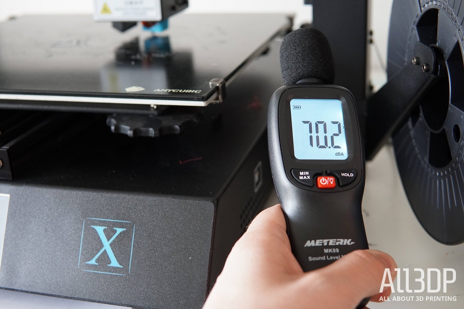 The rest of the printer is not particularly quiet. The Trinamic drivers and cooling fans within lead to an operating noise level of around 70 dB.