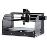 The Genmitsu 3018-MX3 carries full 3-axis capability and has a 300 x 180 mm working area, 7000 RPM spindle, and a durable chassis. Occupying a spot on the market as a low volume, high mix-type of machine for a variety of different materials, the MX3 has the benefit of being tidier to run than most other Genmitsu machines thanks to the acrylic siding, which allow for partial chip containment and should make it easy to clean after long runs.