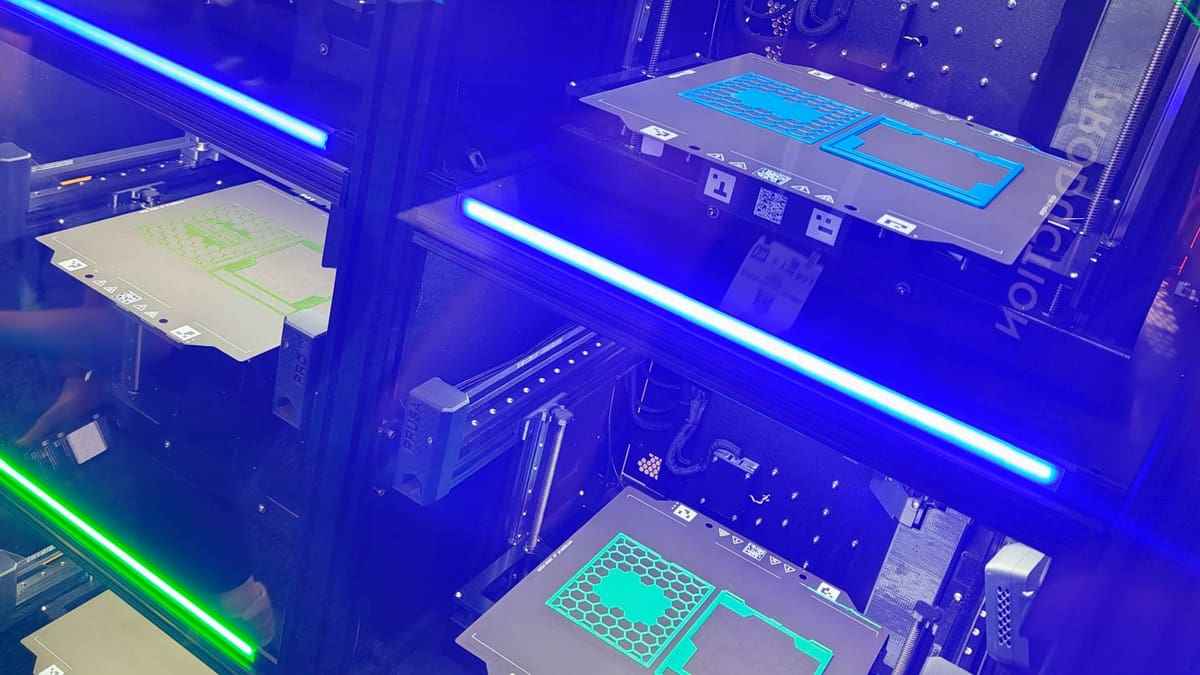 a modular 3D printer comprising many of the company's Pro iX headless 3D printer. Each Pro AFS is overseen by a robotic “harvester” that can remove completed prints and load clean plates for subsequent jobs.